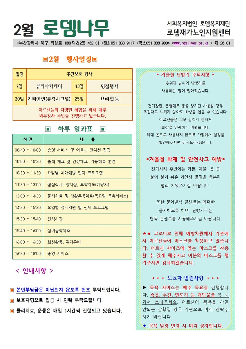 2026년 2월 월보와 프로그램 일정표 작성자 관리자 작성일 2026-02-02 18:22 조회 27 좋아요 0 싫어요 0 인쇄 « 2026년 1월 월보와 프로그램 일정표 2026년 3월 월보와 프로그램 일정표 » 목록보기 답글쓰기 Powered by KBoard