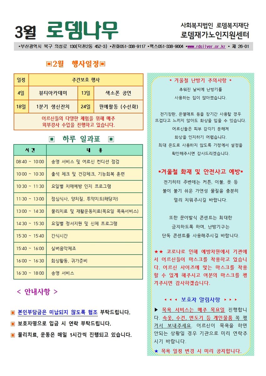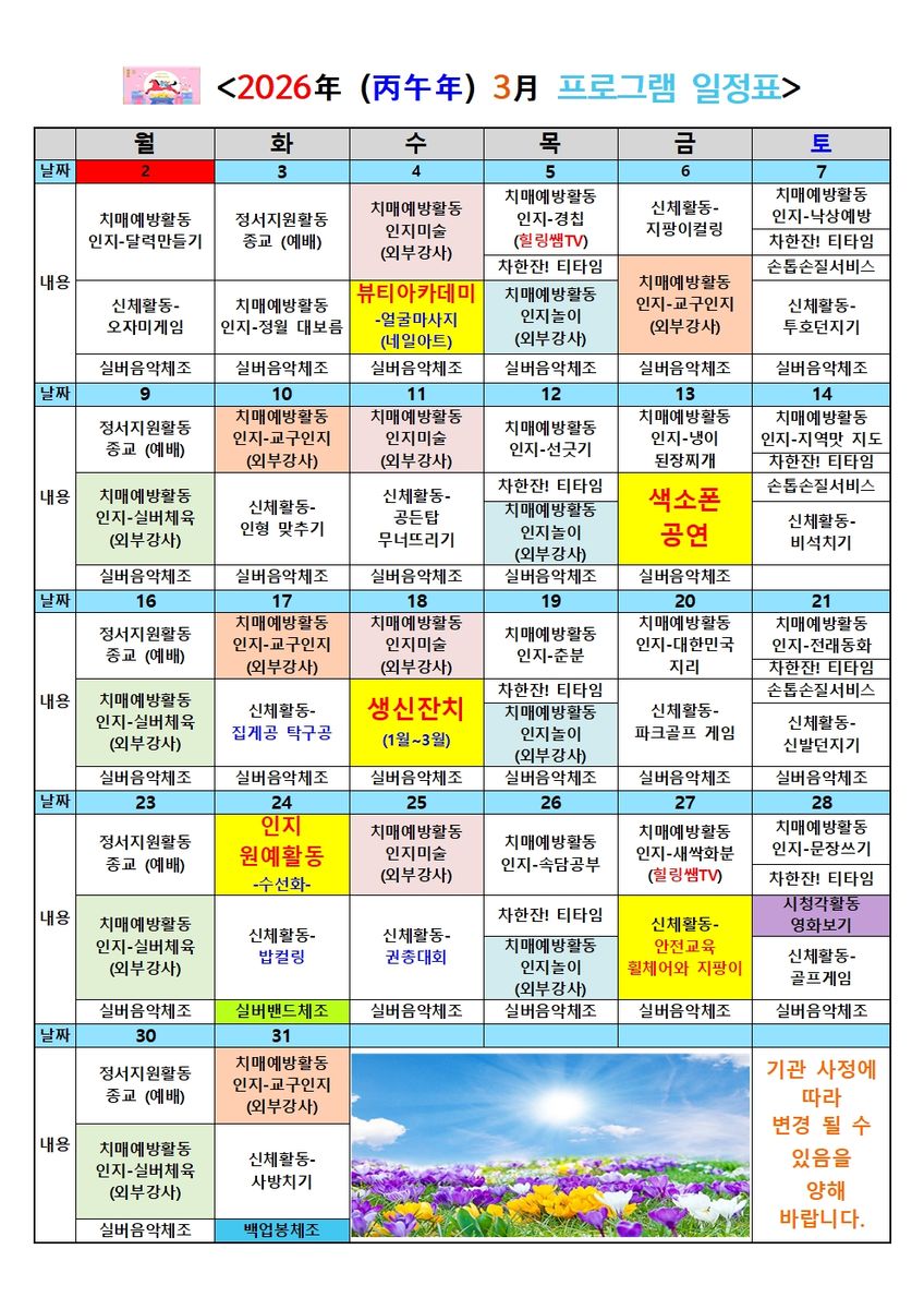 2026년 3월 월보와 프로그램 일정표 작성자 관리자 작성일 2026-03-02 09:17 조회 30 좋아요 0 싫어요 0 인쇄 « 2026년 2월 월보와 프로그램 일정표 목록보기 답글쓰기 Powered by KBoard